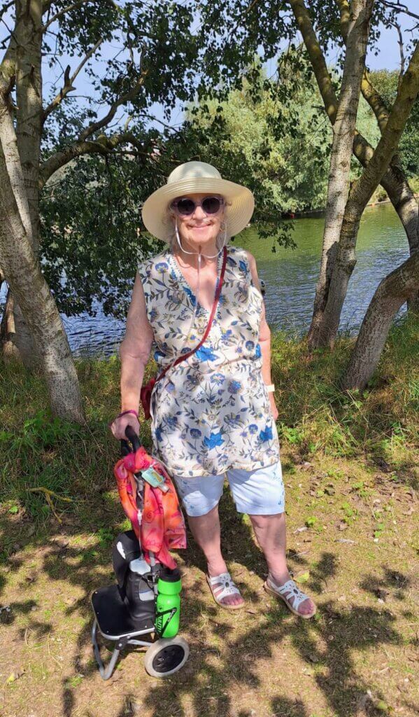 Although I get frustrated about not being able to drive and having to rely on Sean to help me get to a supermarket, there are still things I can do alone. I do a lot of walking around the local area with my oxygen trolley. I’m a Neighbourhood Watch co-ordinator, meaning lots of people always stop me to report things and ask questions, so it can take ages for me to get anywhere!