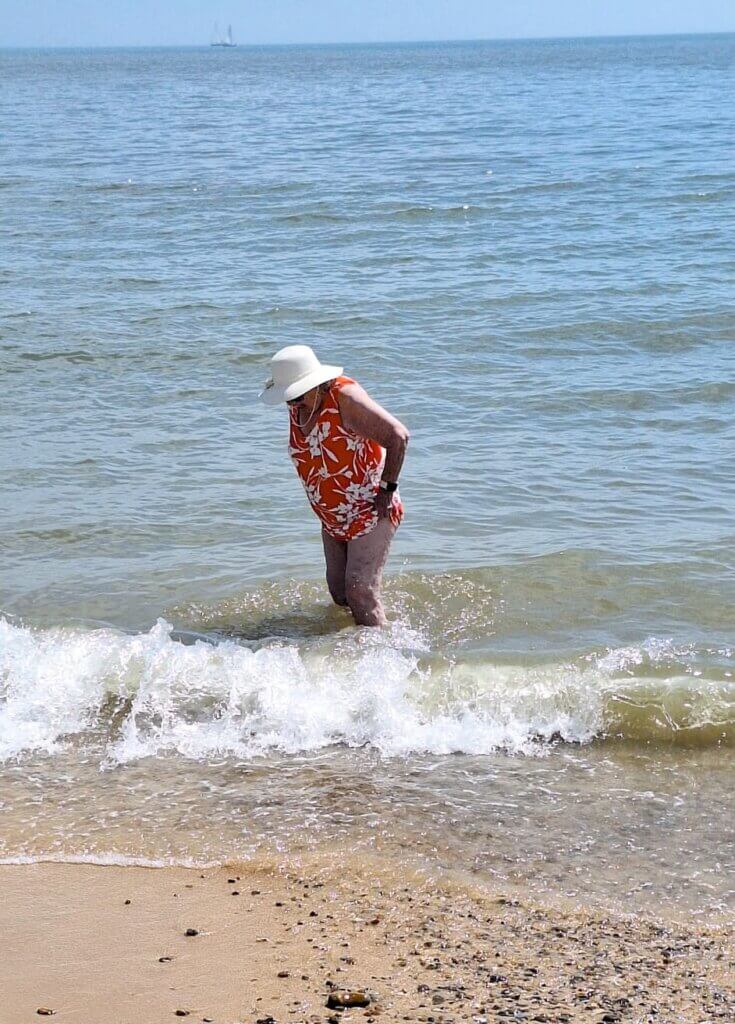 Now I paddle all the time. I’ll lift my dress up and I’ll walk into the sea and Sean will stand there with his eyebrows raised saying, ‘watch your oxygen’. I’ve always been too independent.