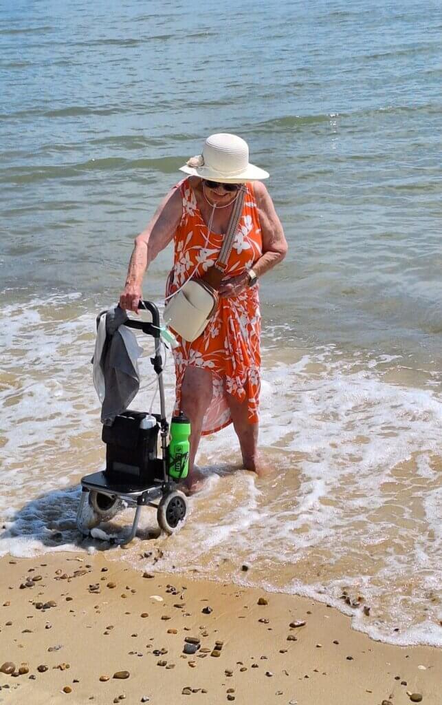 I’ve got a shopping trolley that Sean converted for me to transport the oxygen canister on and that’s made things easier. It goes everywhere – including along beaches, and through fields. It’s fantastic on rough ground as it’s got rubber wheels. It was a great idea of his.